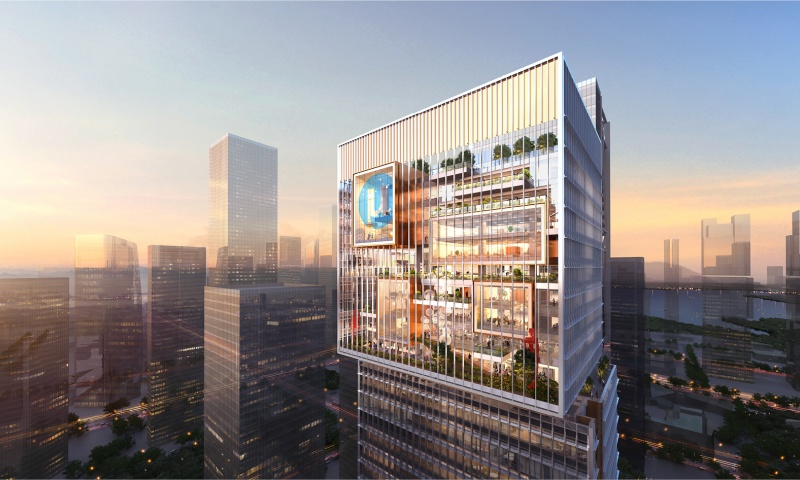 作为前海深港现代服务业合作区的地标性建筑,招联大厦以 “垂直活力社区” 为核心理念,由国际建筑事务所 Leigh & Orange 与 schneider+schumacher 联合打造,为金融科技企业提供创新办公场景。其设计突破传统商务楼宇模式,通过堆叠式体量与分离式交通核布局,塑造 “外敛内放” 的双重空间表情:外立面采用低辐射玻璃幕墙与金属百叶组合,兼顾节能与现代感;内部以环形活力通廊串联办公、商业与绿化平台,顶部嵌入运动径与共享办公空间,呼应年轻团队的创新需求。